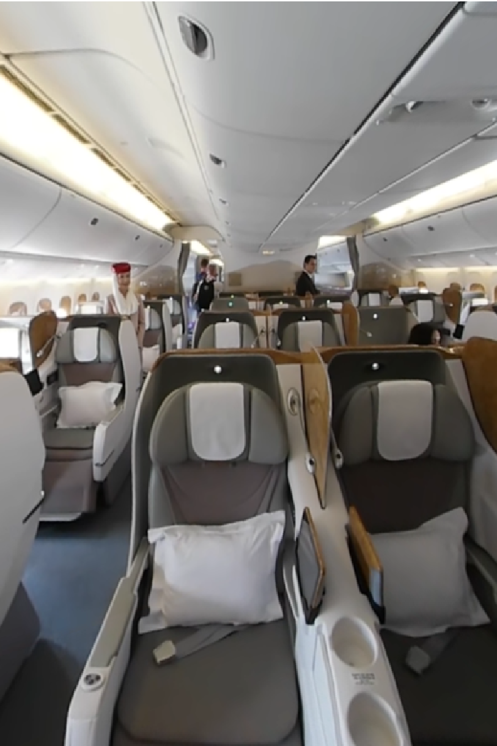 ພາຍໃນເຮືອບິນ Emirates Boeing 777-300 ອັນຫຼູຫລາທີ່ນ່າທຶງ. Emirates ເປັນໜຶ່ງໃນສາຍການບິນທີ່ໃຫຍ່ທີ່ສຸດໃນໂລກ ໄດ້ລົງຈອດເປັນຄັ້ງທຳອິດໃນເມືອງ Zagreb, ປະເທ...